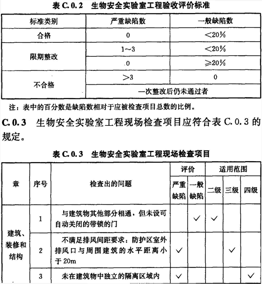 C.0.2 生物安全實驗室工程驗收評價標準應符合表C.0.2的規(guī)定。